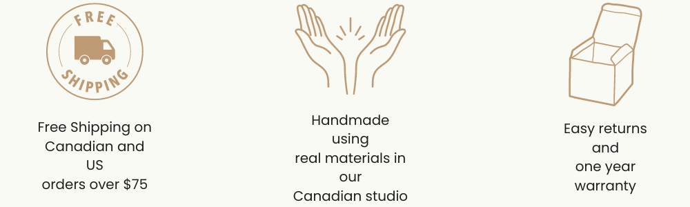 We are eco friendly company using natural materials, recycles silver and gold-fill (not plated). All handmade in our Vancouver studio with design and sustainable practices in our forefront. All pieces are nickel and camdium free.